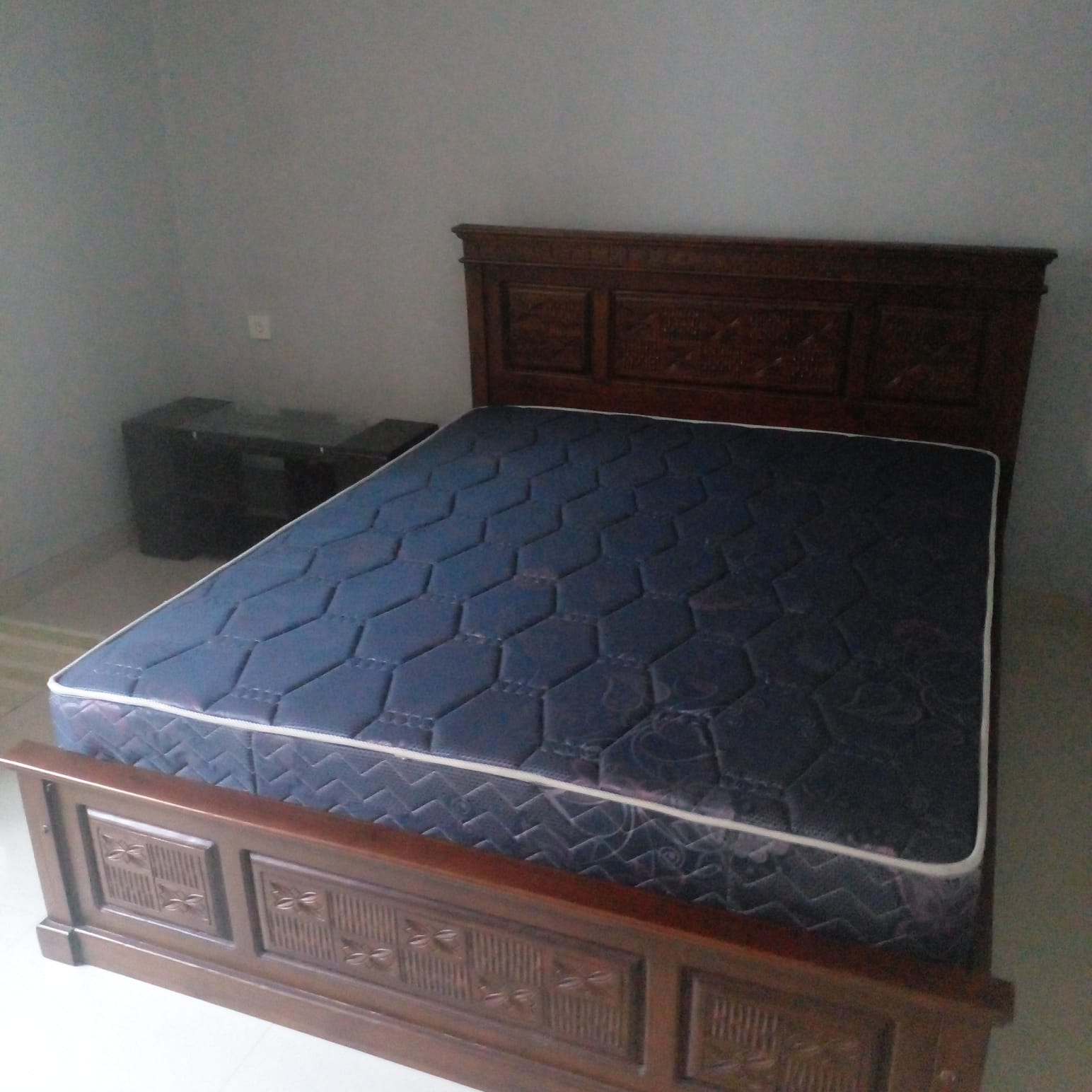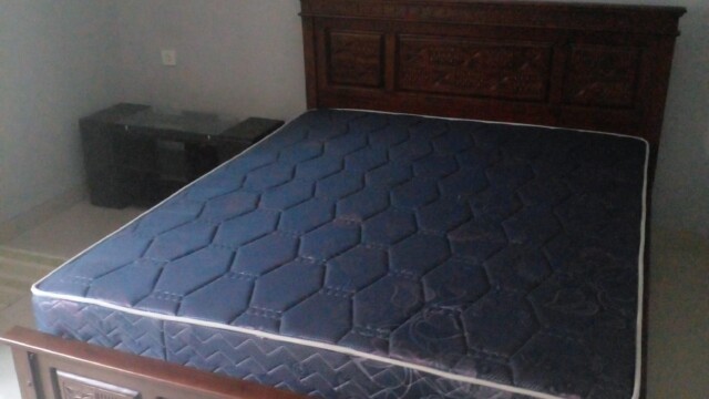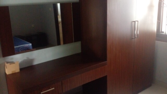 The house features two bedrooms, each with its own en-suite bathroom. The outdoor area offers a lovely terrace overlooking the garden, along with an outdoor kitchen. The house is offered semi-furnished with two air conditioners, a stove, one bed, two wardrobes, one table, and two chairs.